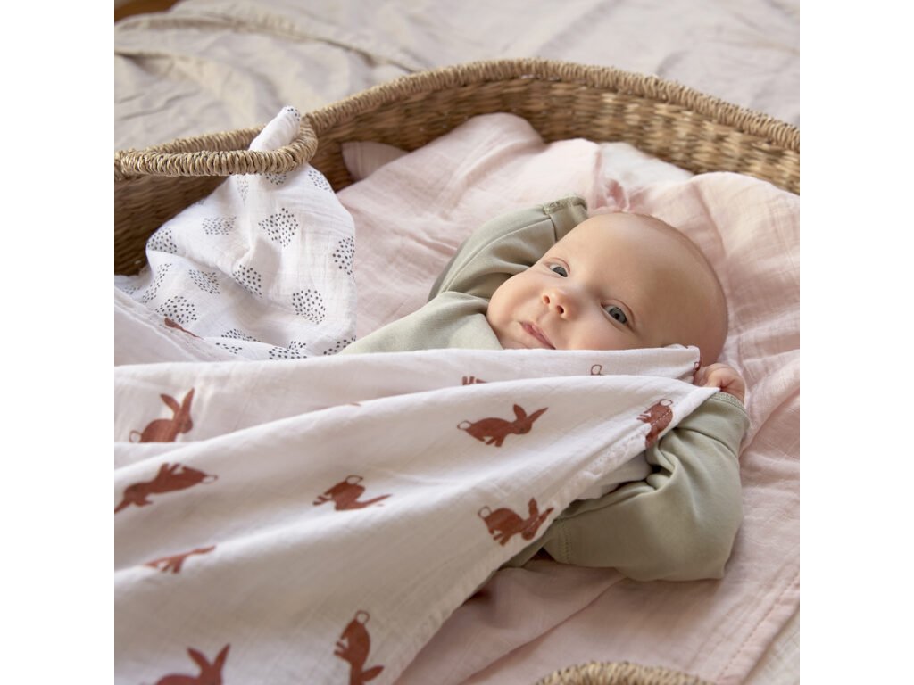 LÄSSIG Swaddle Burp blanket 60x60 Little Forest 2025 rabbit