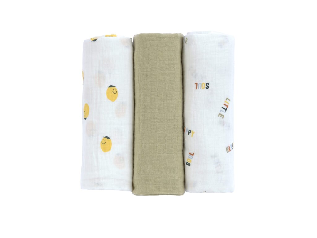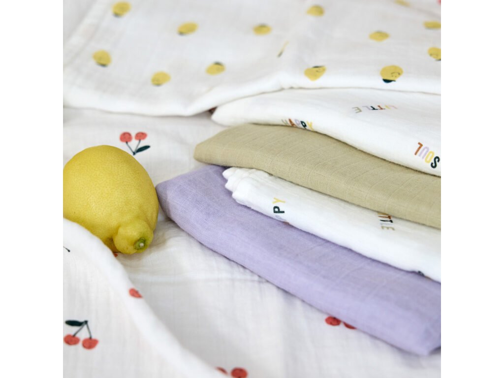 LÄSSIG Swaddle Burp blanket 85x85 Happy Fruits 2025 lemon