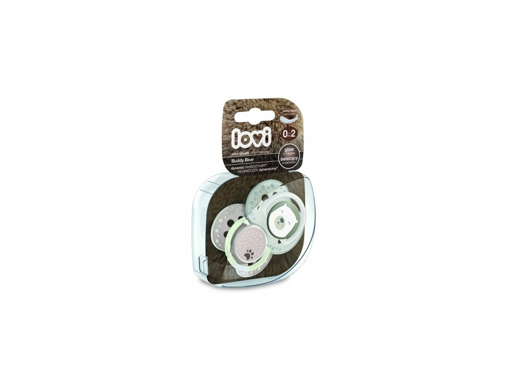 LOVI Dudlík s mini štítkem 0-2m silikonový dynamický BUDDY BEAR 0-2m 2ks