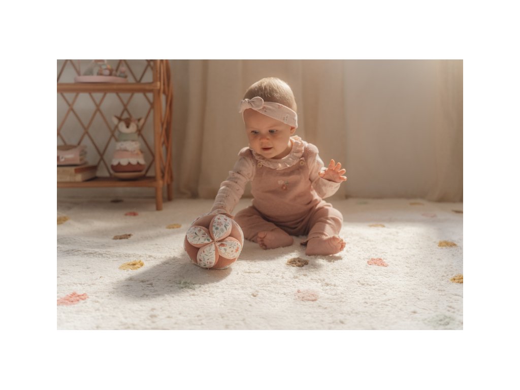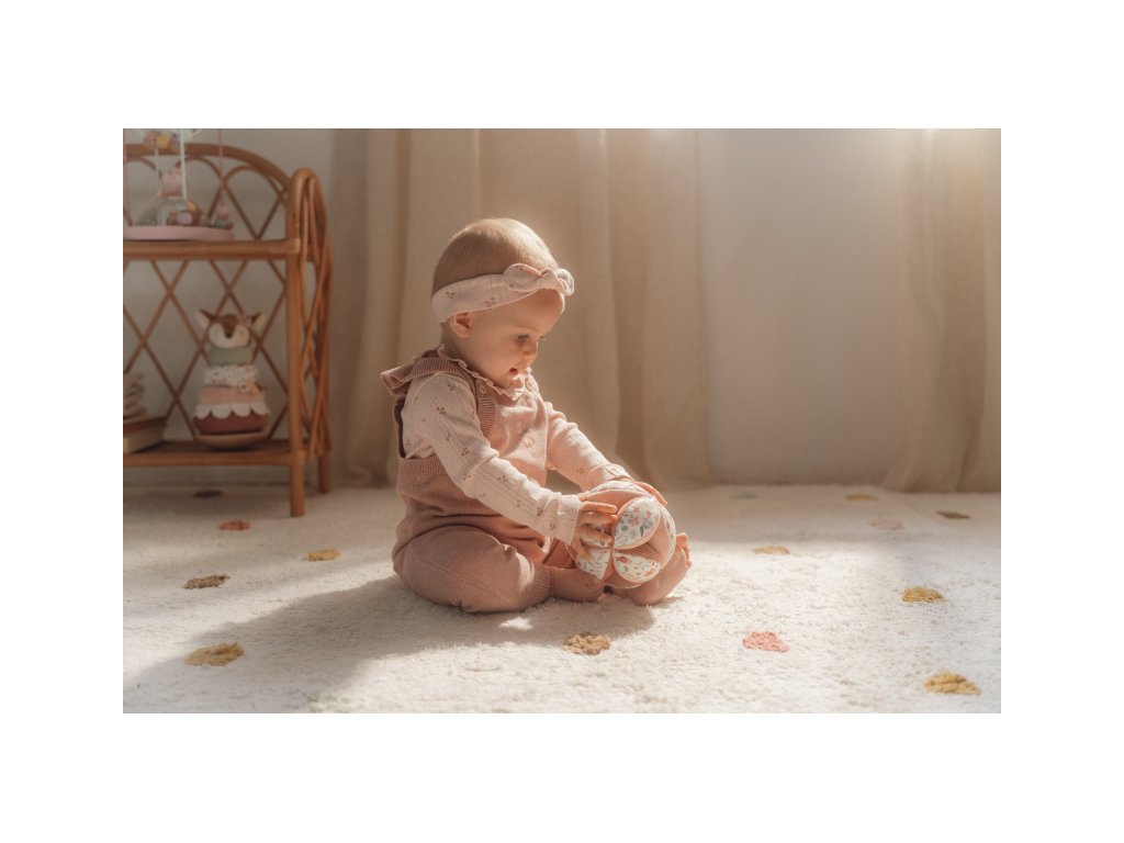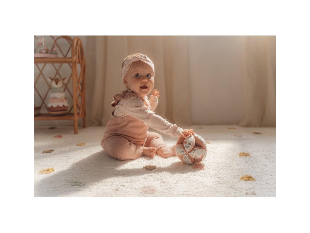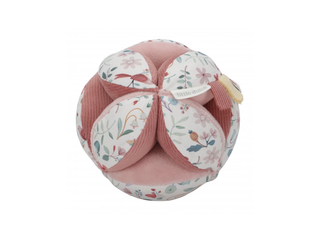 Měkký textilní míček je díky svému provedení snadno uchopenitelný malými dětskými ručičkami. Různorodé textury a vzory lákají dítě ke zkoumání, míček navíc při pohybu jemně cinká. Míček je součástí designové kolekce hraček a doplňků Little Dutch Fairy Garden inspirované životem na zahradě. Rozměry: 12 x 12 x 12 cm Vhodné pro děti od narození.Doplňkové parametry