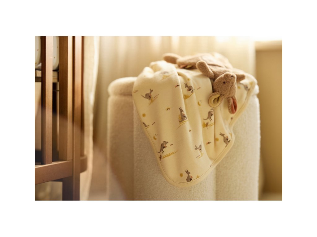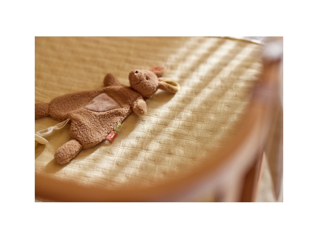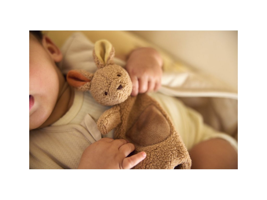 Roztomilý muchláček v podobě klokana z jemného fleece materiálu láká ke hraní i mazlení před spaním v postýlce či v kočárku. Poutko umožňuje připevnit k muchláčkovi šidítko, které tak v postýlce vždy snadno najdete. Rozměry: 26 x 26 x 10 cm Složení: 100% polyester, výplň 100% polyester Možno prát v ruce. Vhodné pro děti od narození.Doplňkové parametry