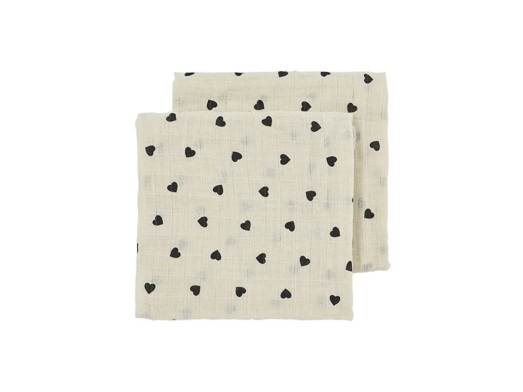 Mušelínové pleny Sweet heart 70x70 cm 2-balení - Soft sand/black