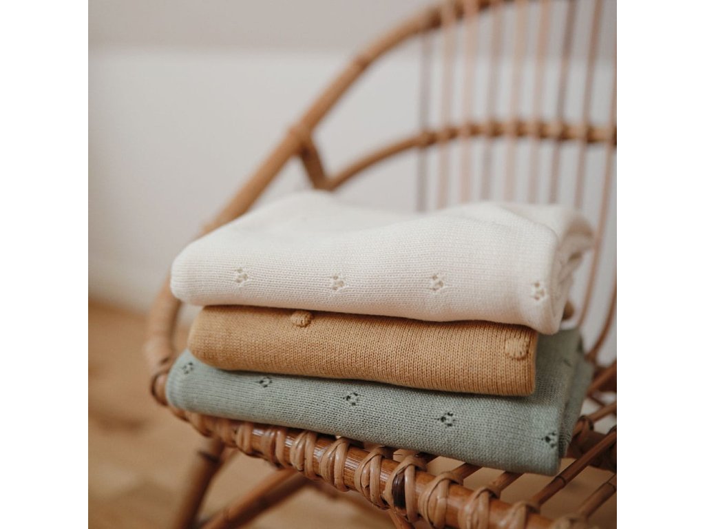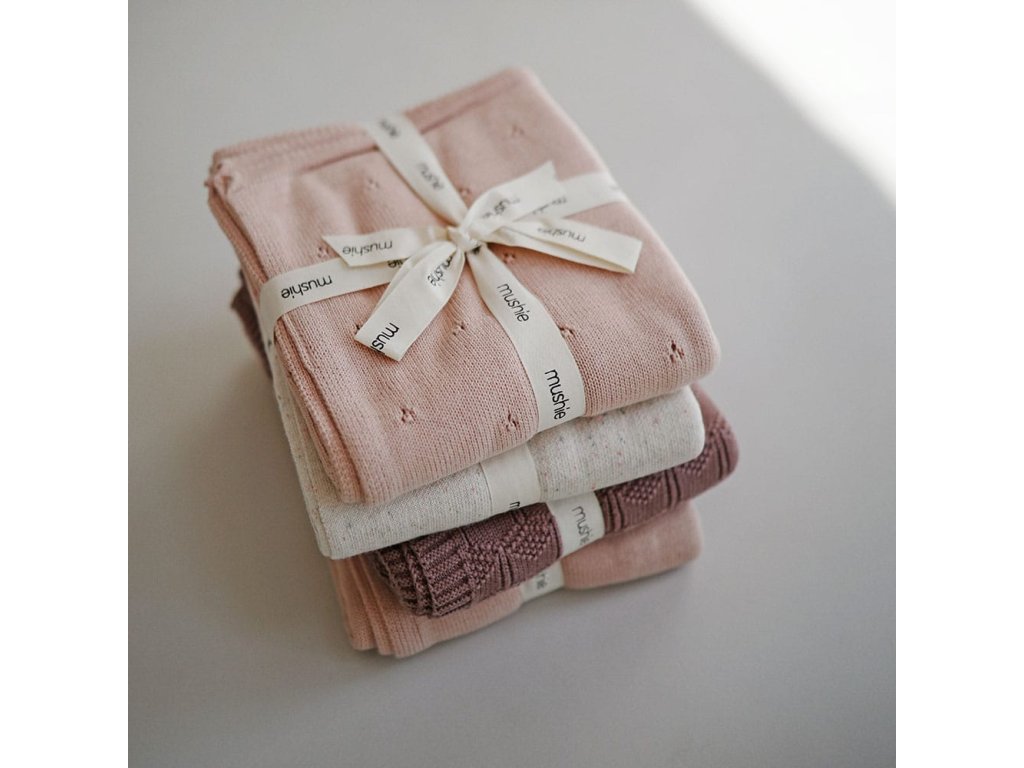 Mushie vytvára kombináciou minimalizmu, jemných zemitých a pastelových farieb a čistých línií pocit harmónie. Svojím nadčasovým a elegantným dizajnom spríjemnia Mushie produkty každý moment s vaším dieťatkom a spravia ho ešte výnimočnejší. Mushie – prémiová dizajnová značka pre najmenších.Detské deky Mushie sú pletené zo 100% organickej BIO bavlny bez akýchkoľvek iných prímesí. Sú teplé, no zároveň priedušné a príjemné na dotyk s citlivou detskou pokožkou. Mushie deky majú decentné elegantné vzory, jemné zemité farby, sú ľahké a prispôsobivé. Šikovný pomocník pri chladnejšom počasí si nájde široké využitie v každej detskej výbavičke ako príjemná prikrývka, podložka do postieľky, na vzdušné zavinutie bábätka, alebo ako obľúbená dečka na túlenie. Mamičky deky ocenia v prípade potreby aj pre seba, pri pocite chladu je možné ich prehodiť cez plecia, alebo použiť ako štýlový šál.Pletené deky majú široké možnosti využitia : Prikrývka do kočíka alebo autosedačky. Zavinutie dieťatka. Podložka na spanie, prebaľovanie alebo pri hre. Príjemná ľahká prikrývka na spanie. Obľúbená dečka na túlenie. Starostlivosť : Pranie v práčke na maximálne 40°C, jemný program. Nesušiť v sušičke. Žehliť iba pri miernej teplote. Pletenú deku nečistite chemicky ani nebieľte.Zloženie : 100% organická BIO bavlna.Rozmery : 80 cm x 100 cm.Vyrobené v Indii.Doplňkové parametry
