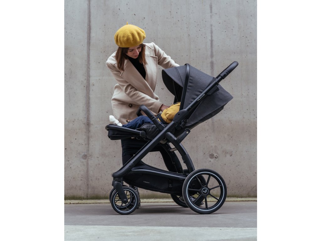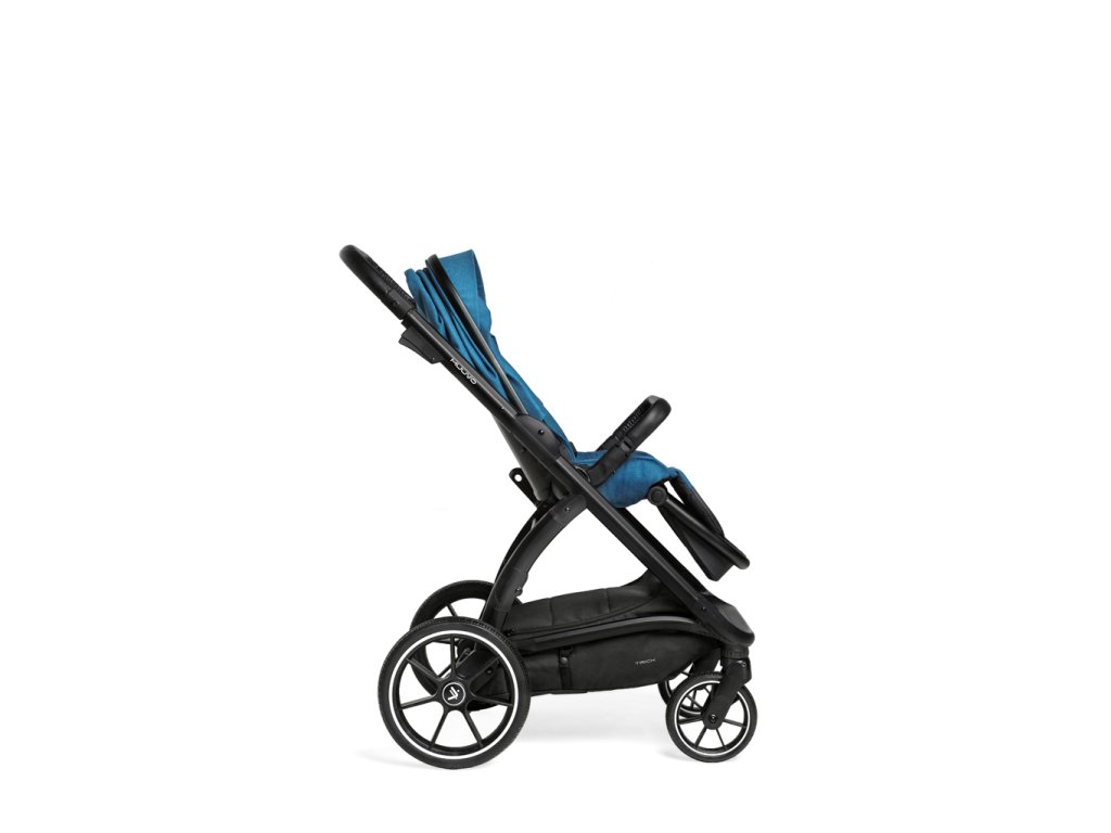 Trick je lehký a extrémně obratný kočárek 2 v 1. Nejvyšší jízdní komfort zajišťuje dobře profilované, prostorné sedátko kočárku, velmi dobré tlumení nárazů a nastavitelná opěrka nohou.