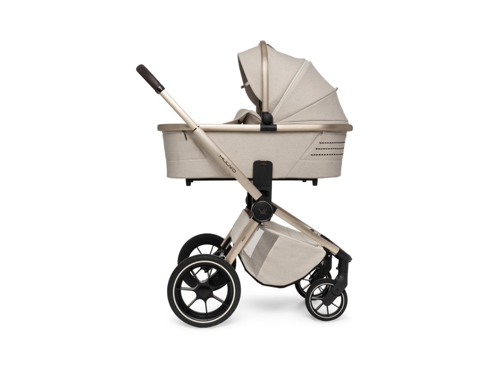 - hlubokou korbu lze nasadit přímo na podvozek, vyšší rodiče ocení možnost nasazení korby na adaptéry zvyšující posazení korby na podvozku pro lepší manipulaci s miminkem