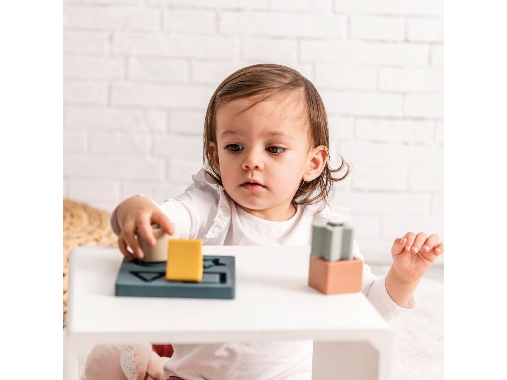 Vkládačka vyrobená z měkkého, vysoce kvalitního silikonového materiálu, který je příjemný na dotek a splňuje všechny normy pro hračky. Dá se využít nejen jako vkládací hračka, ale také jako kousátka různých tvarů pro miminka při prořezávání zoubků - poskytuje maximální úlevu a zároveň bezpečné a zábavné hraní Pomáhá miminkům učit se barvy, různé tvary, trénovat reakce, logické a motorické dovednosti.Vlastnosti: