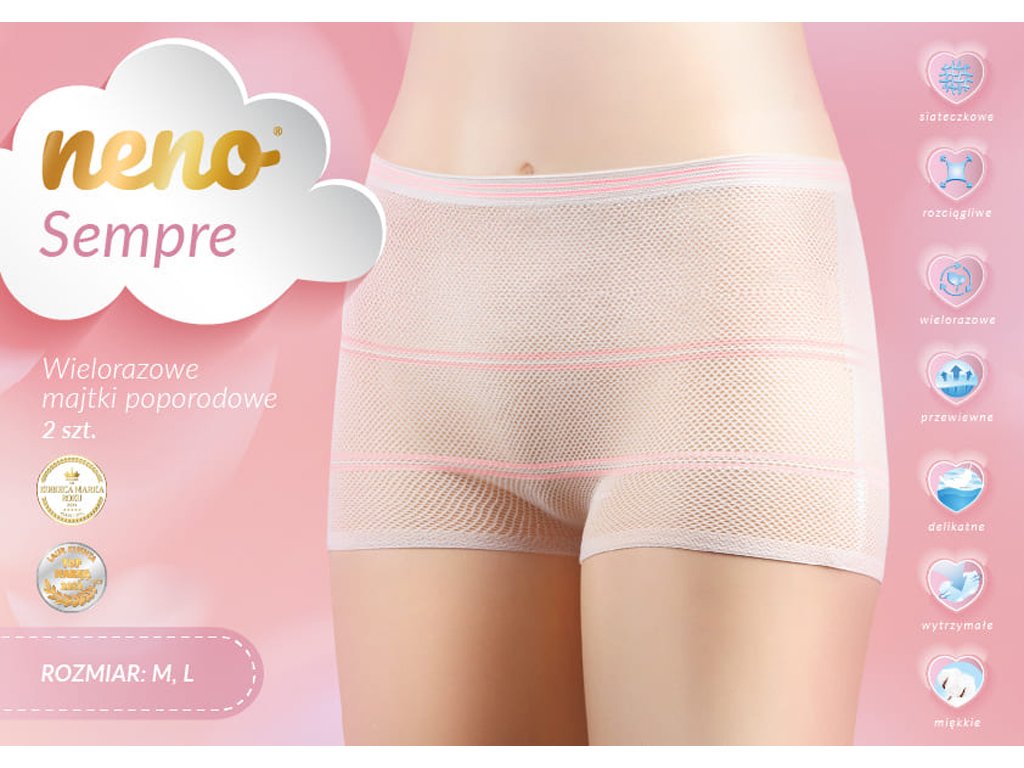 Kalhotky Neno Sempre jsou navrženy pro maminky, které po porodu hledají spolehlivé, prodyšné a pohodlné řešení. Poskytují ideální podporu poporodním vložkám, chrání jizvu po císařském řezu a jsou vhodné k opakovanému použití po celou dobu zotavování.Vlastnosti:
