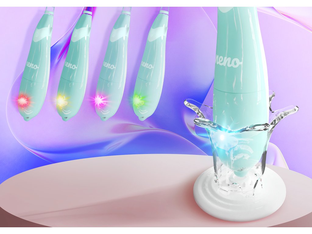 Elektrický zubní kartáček Neno Tutti je speciálně navržen pro děti ve věku od 3 do 6 let. Díky měkkým nylonovým štětinkám, 22 000 vibracím za minutu a časovači vyčistí zoubky vašeho děťátka efektivně a pomůže mu osvojit si správné návyky ústní hygieny.Na druhé straně originální design a atraktivní funkce, jako například 7 veselých melodií, podsvícení a barevné LED diody, udělají z čištění zubů vašeho děťátka zábavný zážitek. Vytvoření zdravých návyků ústní hygieny u děťátka vyžaduje čas a odhodlání, proto je nejlepší začít co nejdříve. Elektrický zubní kartáček s rukojetí ve tvaru veselého delfína bude v tomto procesu dokonalou podporou.