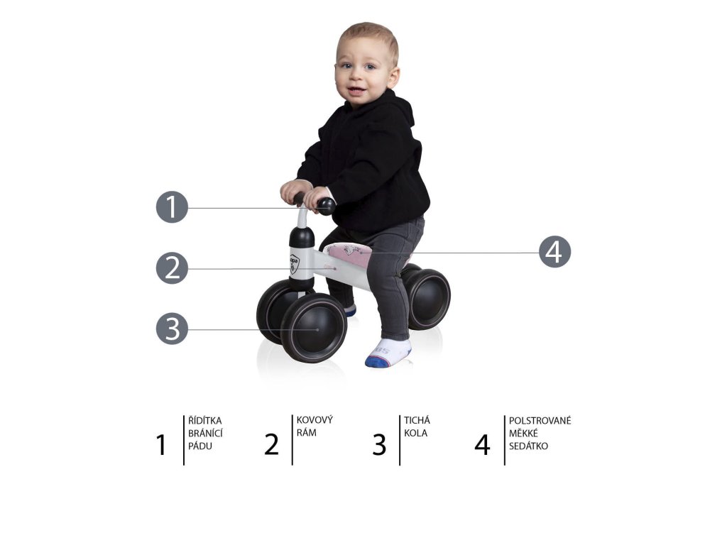 Odrážedlo je vhodné pro děti od 18 měsíců do 20 kg a podporuje rozvoj rovnováhy i pohybových dovedností.