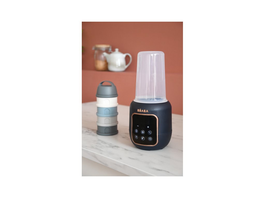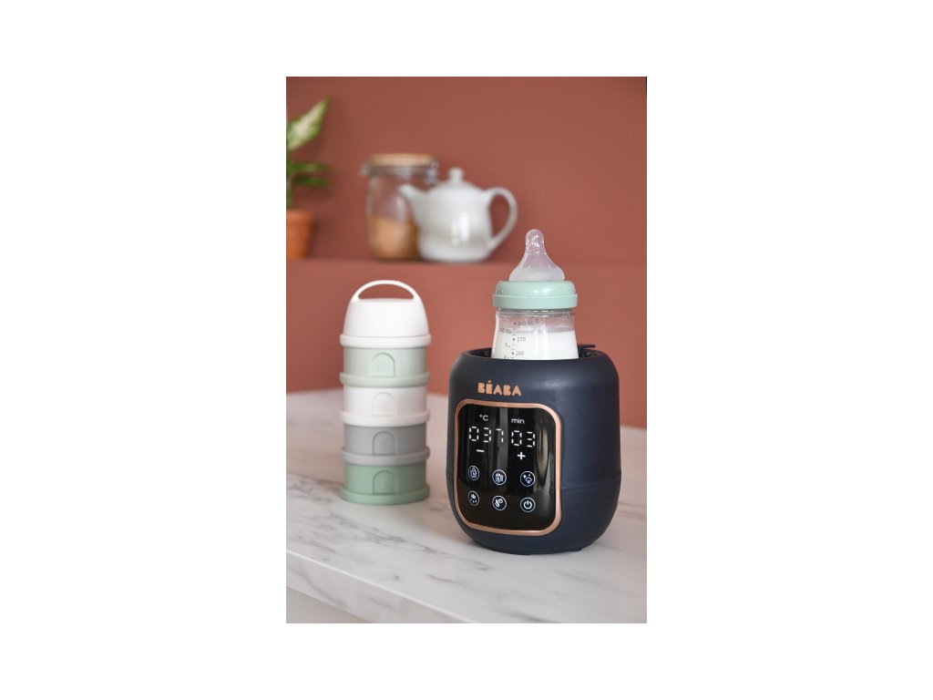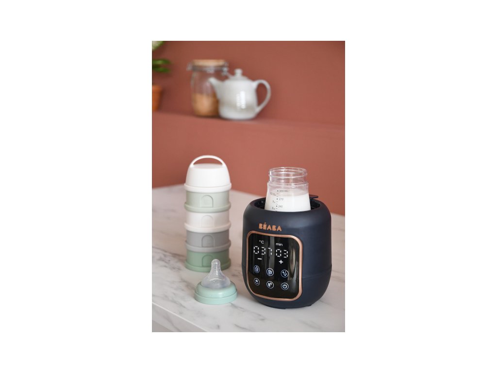 Multifunkční ohřívačka Beaba Multi Milk ohřívá i rozmrazuje kojenecké lahve s mlékem i příkrmy ve skleničce a sterilizuje lahve a jejich příslušenství. Elektrická ohřívačka nabízí dva způsoby ohřevu - expresní ohřev vodní párou a klasický ohřev ve vodní lázni. Jemné ohřívání ve vodní lázni pomáhá zachovat živiny v ohřívaném mateřském mléce. Teplotní senzor umožňuje nastavení ohřívání na požadovanou teplotu. Ohřívačka je vybavena časovačem a automatickým vypínáním. Parní víko zvyšuje efektivitu ohřevu. Digitální dotykový displej usnadňuje obsluhu ohřívačky. Vhodné pro většinu typů lahviček, sáčků na mateřské mléko i skleniček s příkrmy.Doplňkové parametry