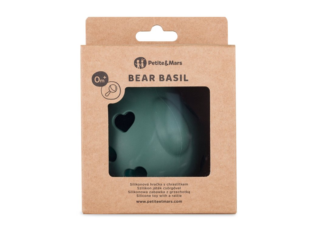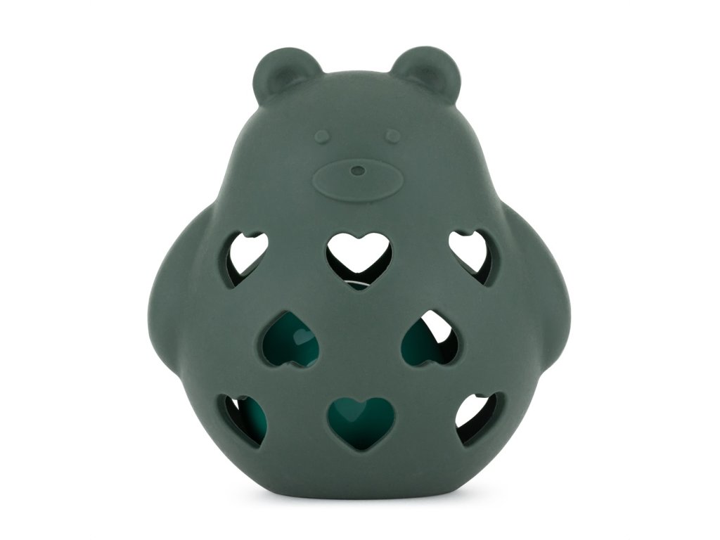 PETITE&MARS Hračka silikonová s chrastítkem Bear Basil Misty Green 0m+