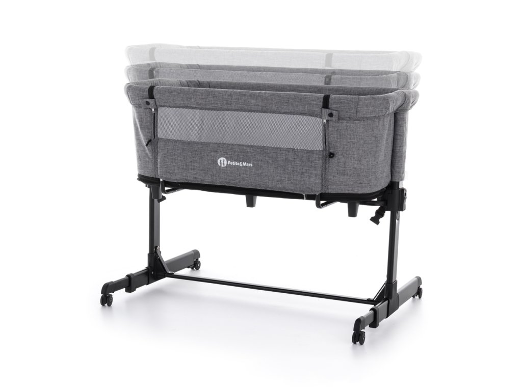 - Výška postýlky je nastavitelná do 5 poloh díky čemuž ji snadno přizpůsobíte výšce rodičovské postele (vhodná je pro postele, které mají vrch matrace ve výšce 55 – 66 cm od podlahy)