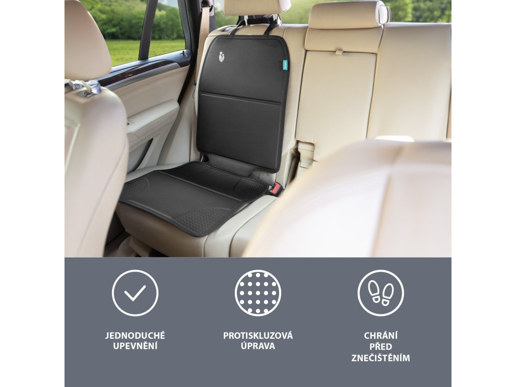 Ochrana, která pokryje celou plochu auto sedadla, zabrání jeho znečištění a zároveň díky protiskluzové úpravě udrží dětskou sedačku pevně na místě. Ochrana má tvarovanou spodní část, takže sedadlo auta je opravdu dobře izolováno od případných nečistot.