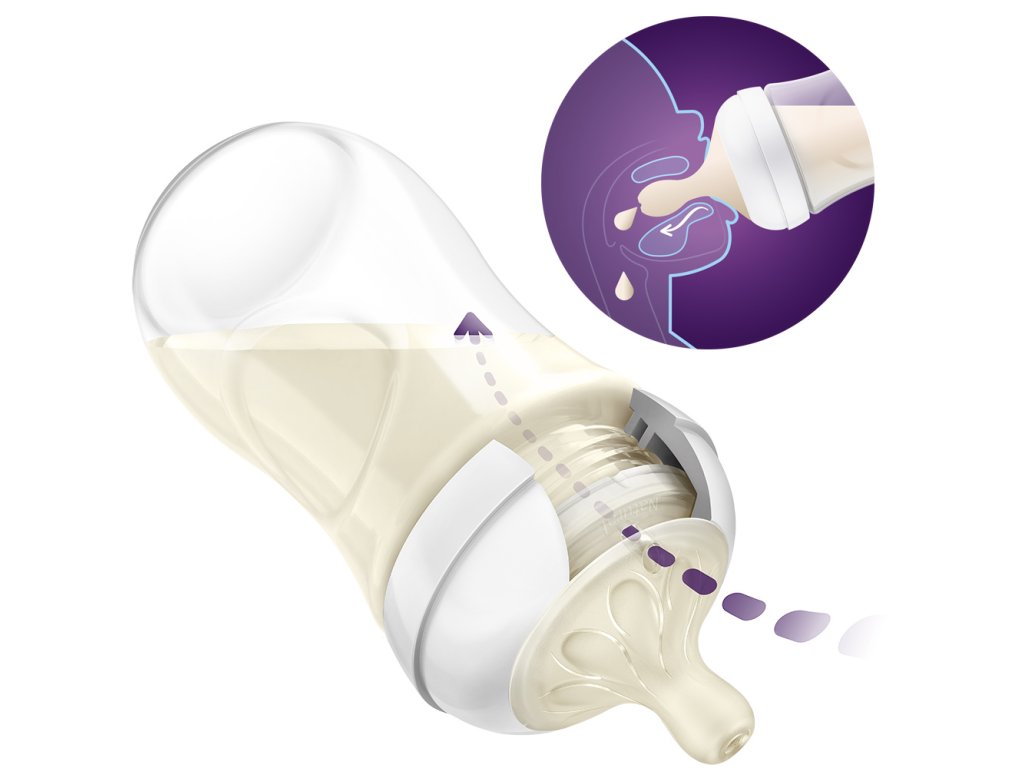 Savička dudlíku Natural Response uvolňuje mléko pouze tehdy, když dítě aktivně pije. Dítě tak může pít, polykat a dýchat přirozeným rytmem, stejně jako z prsu. Snadno lze tak kombinovat kojení a krmení z lahvičky. Snadná kombinace kojení a krmení z lahve