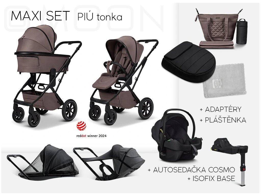 Vhodný od narození do 3 let, komfortní a lehká hluboká vana s rozepínatelnou stříškou s ventilační síťkou, hluboká vana s ventilačním odepínacím okénkem, paměťové adaptéry pro snadné vyjmutí hluboké vany, prostorný sportovní sedák s rozepínatelnou stříškou a krytou ventilační síťkou, výškově nastavitelná zádová opěrka u sportovního sedáku s odvětráváním, polohovatelná opěrka zad a nohou až do úplného lehu, paměťové adaptéry u sportovního sedáku, opěrka nohou u sportovního sedáku nemá hranu, odnímatelné madlo před dítě s koženkovým potahem, výškově nastavitelná kloubová rukojeť, stříška hluboké vany a sportovního sedáku s UPF 50+ ochranou, sportovní sedák nastavitelný po i proti směru jízdy, polstrované bezpečnostní pětibodové pásy, přední nafukovací otočná kola s možností aretace, nafukovací zadní kola, prostorný úložný košík.