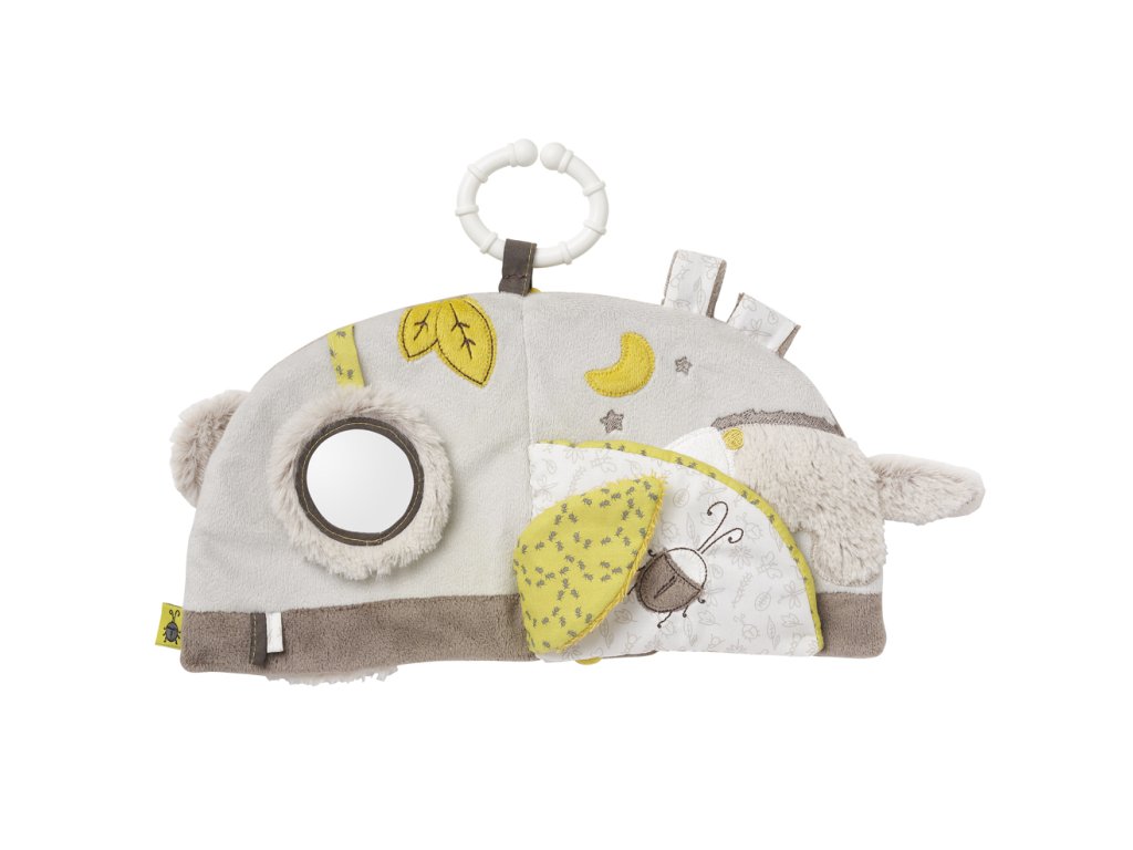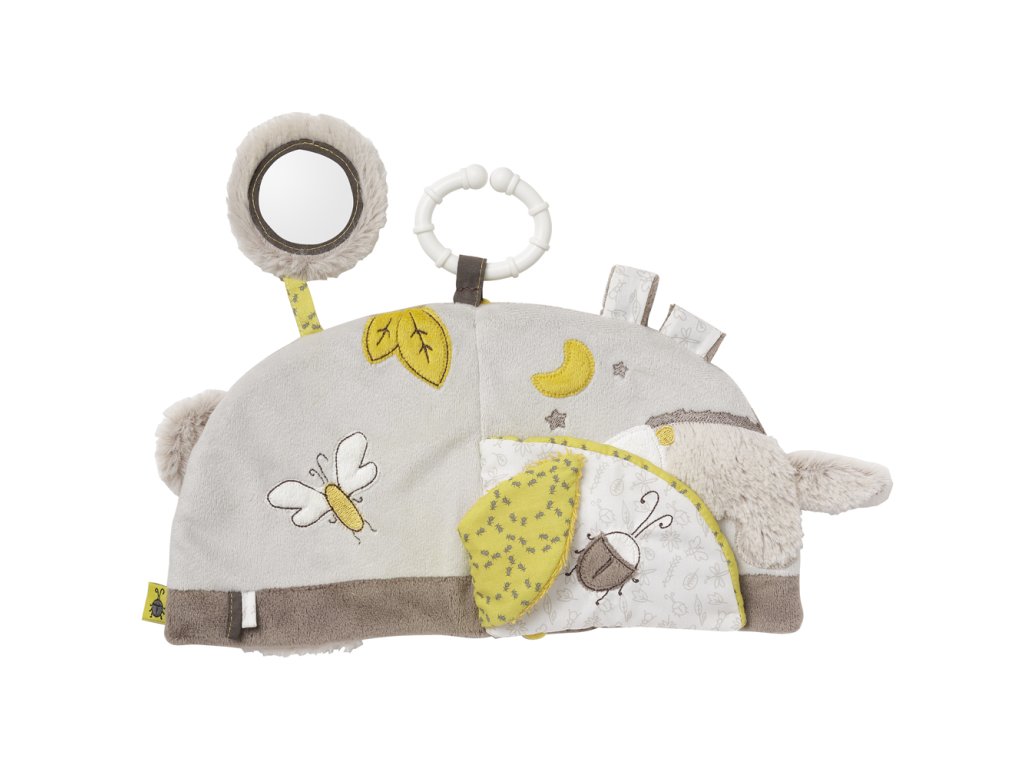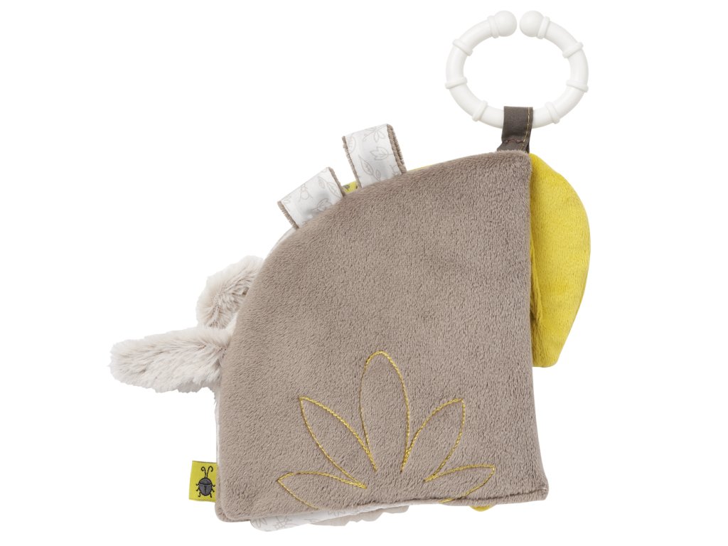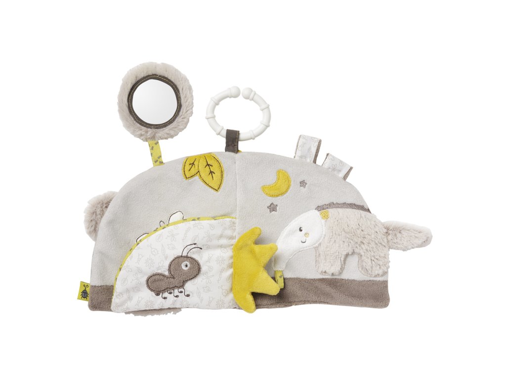 Tato kreativní plyšová knížka je ideální pro stimulování a rozvíjení dětských vjemů. Díky praktickému poutku tuto knížku využijete nejen v kočárku, ale i v postýlce, v autě, či kdekoliv to bude nutné. Svým atraktivním vizuálním provedením, využitím barev a zrcátku zaujme zvědavé dětské očka. Použité různé materiály a chrastítko se postarají o pozornost dětských oušek.