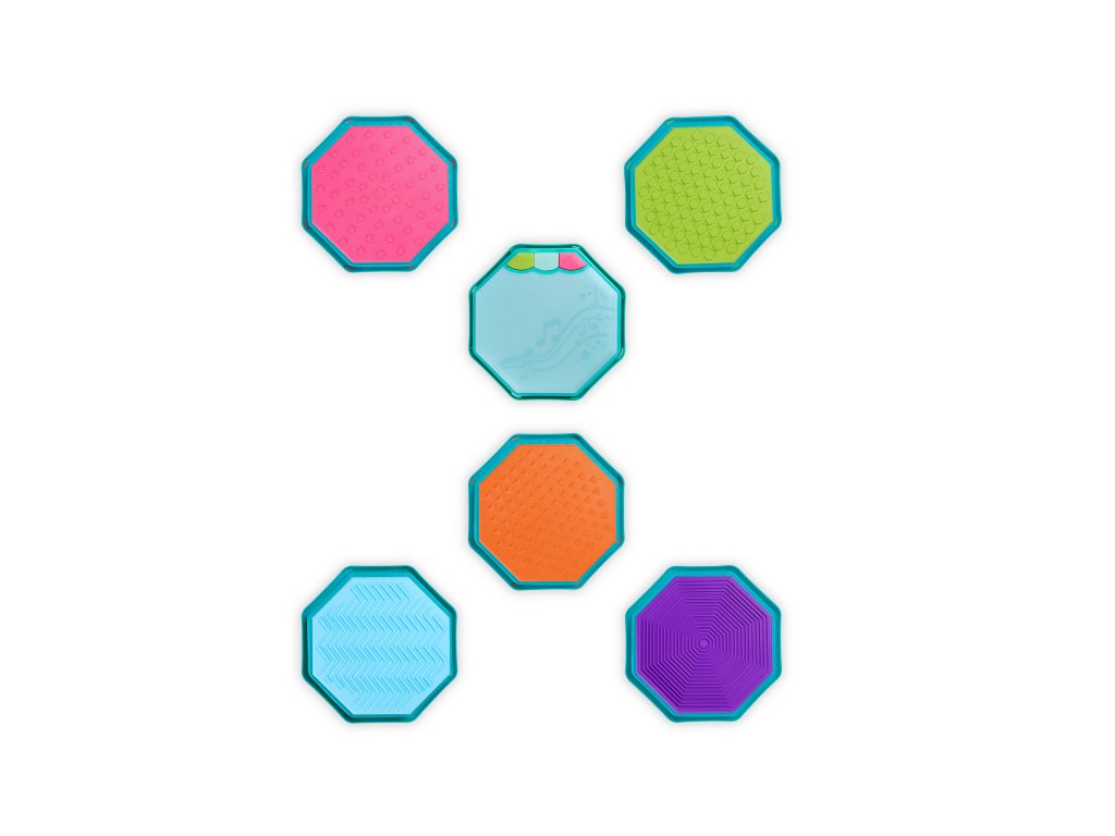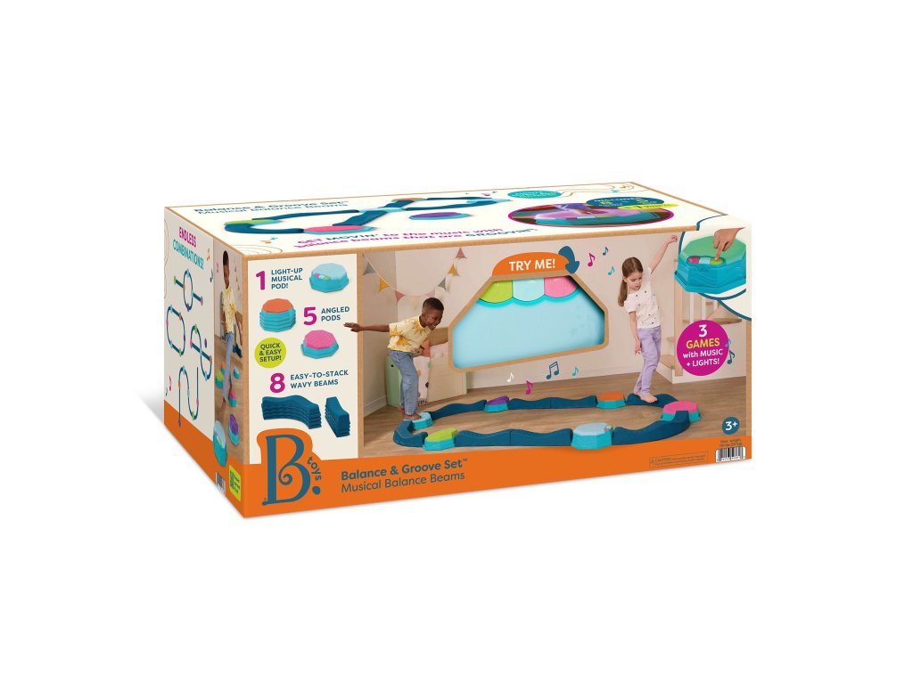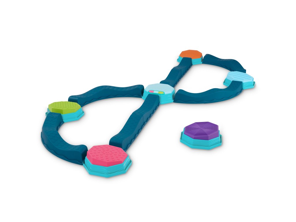 Variabilní překážková dráha Balance & Groove poskytne vašim dětem zábavu a zároveň pomáhá rozvíjet jejich rovnováhu, koordinaci a hrubou motoriku. Součástí sady je speciální hudební stupínek s LED světelnými efekty, který dodává celé dráze magický efekt a motivuje děti zkoušet další a další herní varianty. Sada nabízí mnoho kombinací a způsobů použití, takže pokaždé můžete vymyslet novou, zajímavou variantu. Každý kulatý stupínek navíc nabízí jinou texturu na horní barevné straně. Modulární balanční dráha – 4 vlnité překážky, 4 rovné překážky a 5 senzorických stupínků umožňují nekonečné kombinace a variabilní stavby Hudební stupínek s LED světelnými efekty – speciální díl, který hraje a svítí a nabízí tři zábavné hry Podpora motorického rozvoje – chůze po dráze posiluje rovnováhu, koordinaci a jistotu pohybu Senzorické zážitky – různé povrchy stupínků podporují hmatové vnímání a rozvoj smyslů Jednotlivé díly se velmi snadno spojují Pro samostatnou i skupinovou hru – ideální pro děti, které si chtějí hrát samy, i pro společné aktivity s kamarády nebo sourozenci Jednoduché skladování – všechny díly lze snadno stohovat a kompaktně uložit Vhodné pro vnitřní i venkovní hraní Sadu je možné kombinovat se samostatně prodávanou překážkovou dráhou Balance & Hop i sadou sadou překážek a stupínků Balance & Build. Baterie 4x AA (1,5V) jsou součástí. Vhodné pro děti od 3 let.Doplňkové parametry