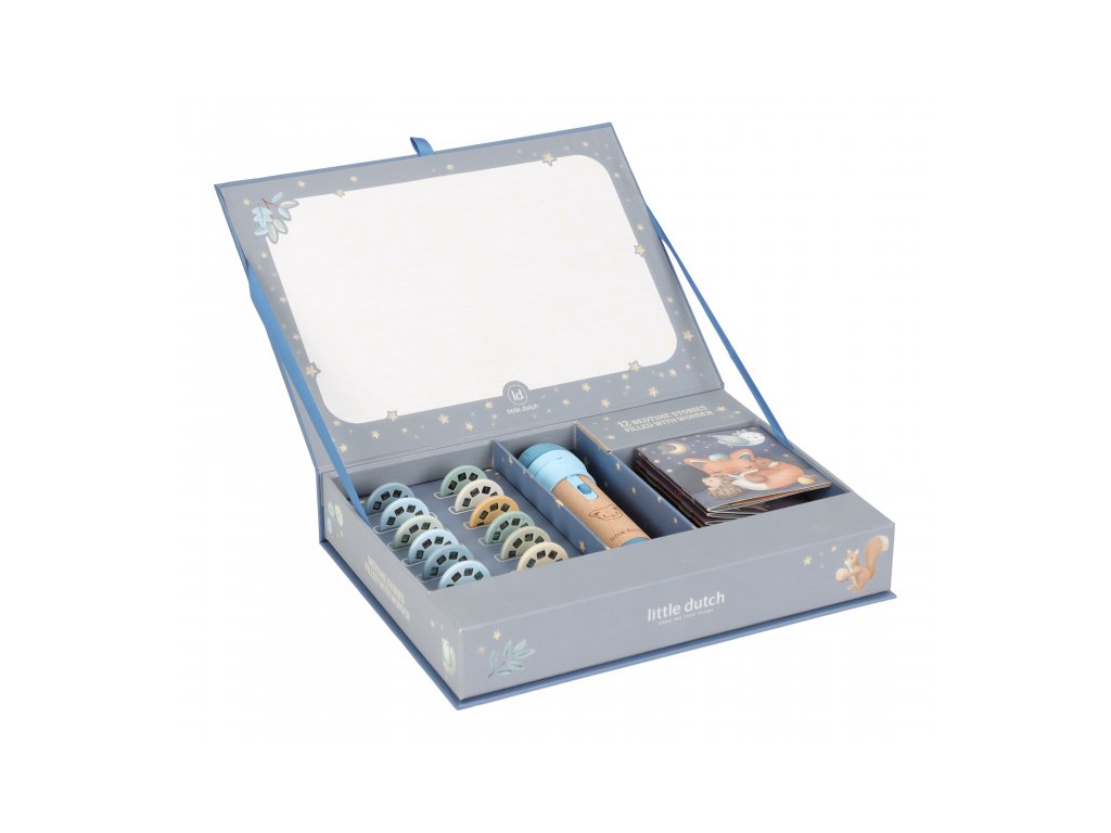 Přineste dětem kouzlo pohádkových příběhů s tímto jedinečným projektorem ve tvaru baterky! Sada obsahuje 12 promítacích kotoučků, z nichž každý vypráví svůj vlastní pohádkový příběh prostřednictvím nádherných ilustrací, které se promítají na stěnu. Každý příběh je doplněn tematickou knížečkou s ilustracemi, která zážitek ještě umocní. Projektor má pevnou dřevěnou rukojeť a funguje na baterie, takže si jej děti mohou vzít kamkoliv s sebou. Po skončení příběhu lze baterku i veškeré příslušenství snadno uložit do krásného úložného boxu. Ideální pro malé objevitele a milovníky pohádek! Perfektní dárek pro děti, které rády objevují a prožívají pohádky! Baterie 1 x AAA (1.5V) není součástí balení. Vhodné pro děti od 4 let.Doplňkové parametry