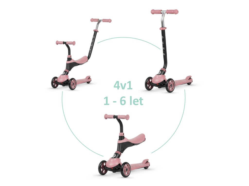 QPLAY Koloběžka/odrážedlo Sema 5v1 Pink, věk 1-6 let, do 50 kg