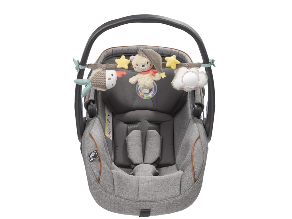 Přívěšky jsou navrženy tak, aby dítě mělo potřebu je zkoumat, objevovat a aby podporovaly motorické dovednosti dítěte a koordinaci rukou a očí. Snadno uchopitelné pro dětské ručičky. Dvě svorky umožnují rychlé, snadné a pružné připevnění ke kočárku, sedáku nebo postýlce.