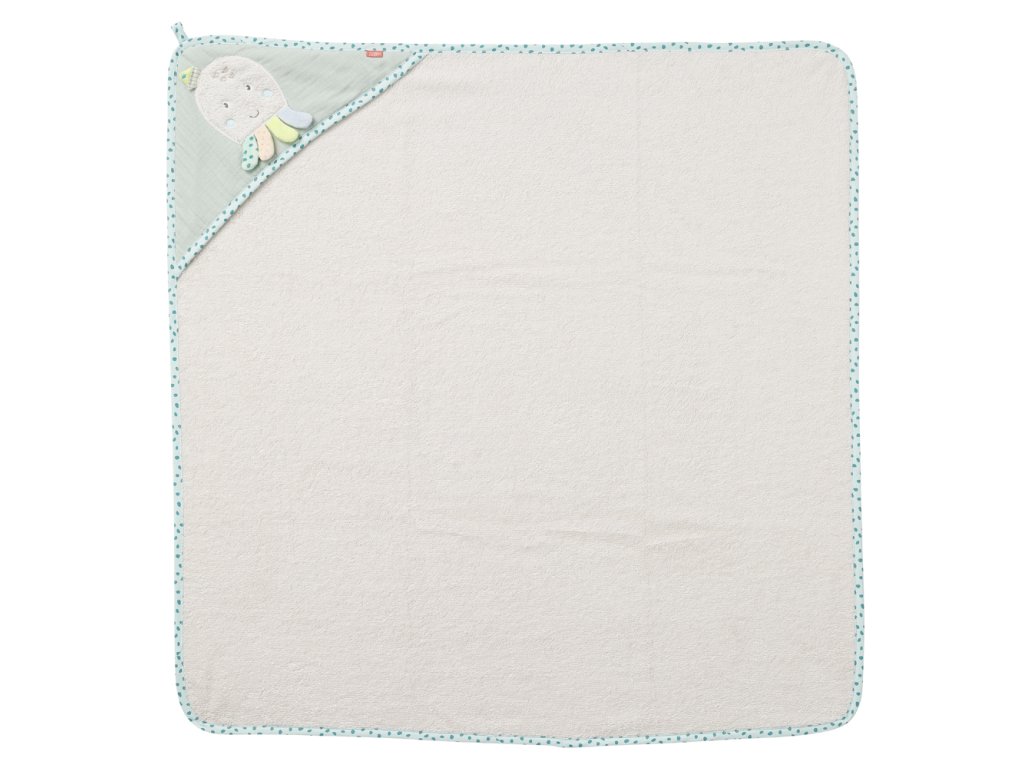 Děti se mohou do osušky bezpečně zachumlat - roztomilá kapuce s chobotnicí udrží hlavičku v teple. Ani každodenní používání a časté praní neublíží plyšovému mořskému tvorovi, ani měkkému koupacímu ponču.