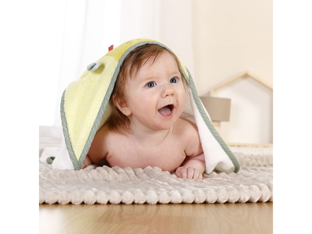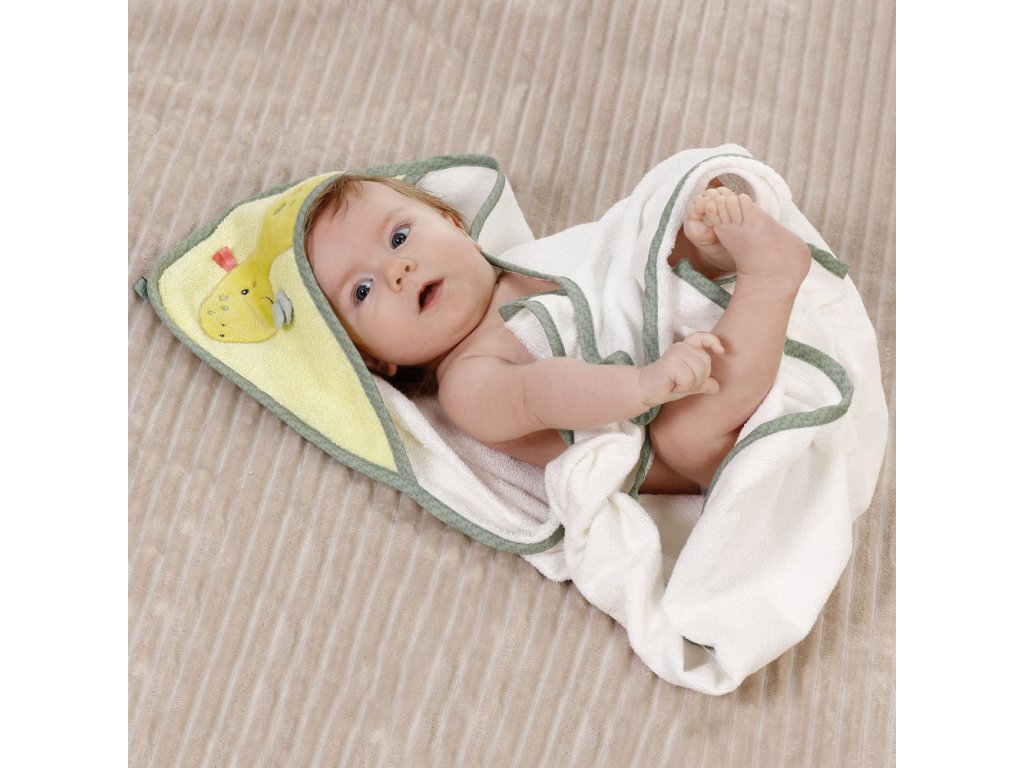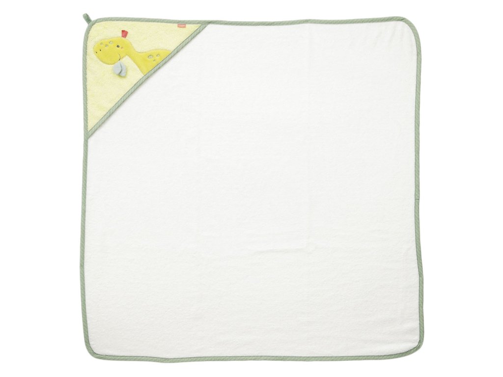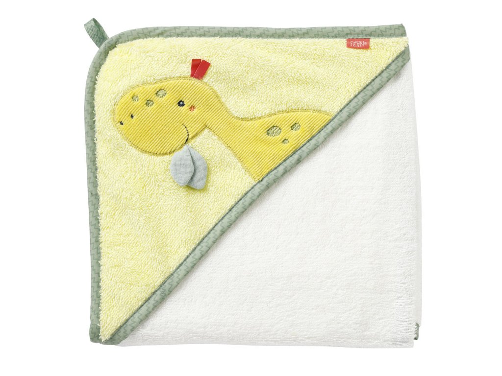Savá dětská osuška s motivem roztomilého dinosaura miminko jemně usuší a ochrání před chladem a průvanem. Měkký nadýchaný materiál zve k bezpečnému a pohodlnému zachumlání po koupeli. Ručník je vhodný pro každodenní použití. Lze jej prát v pračce na 60 °C. Pomocí praktického poutka lze ručník zavěsit na věšák.