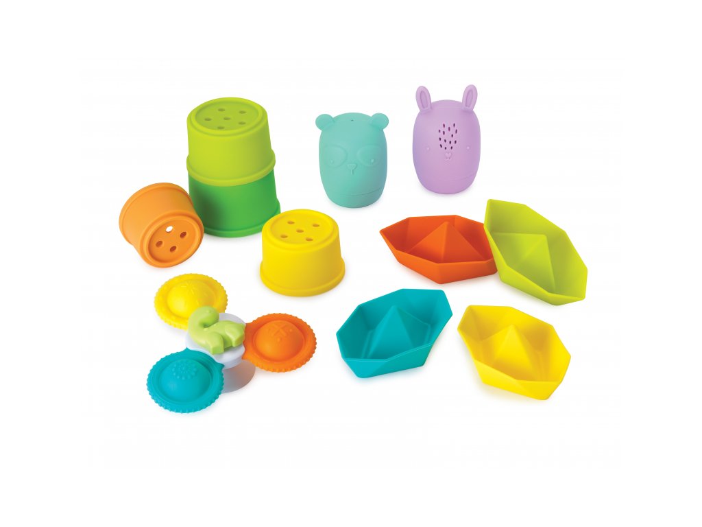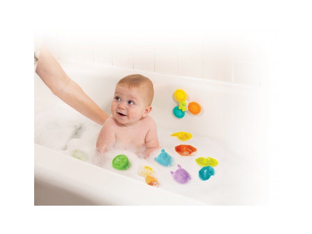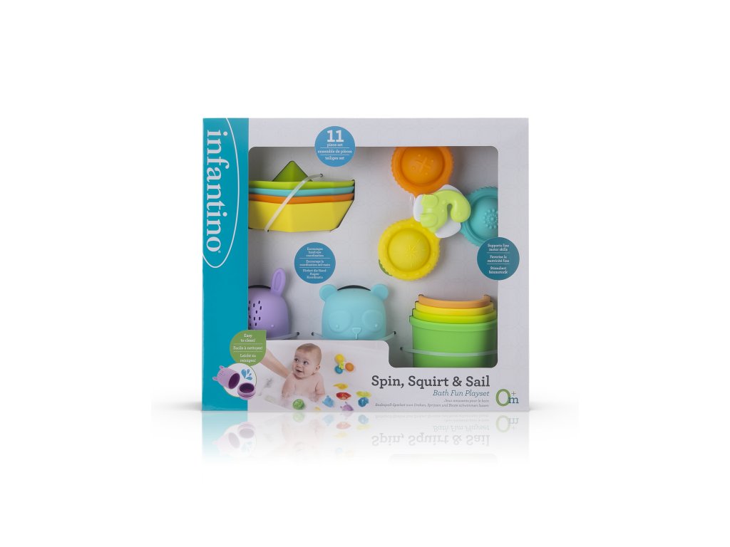 Velká 11-dílná sada hraček nejen do koupele zabaví vaše dítě při každodenním koupání. Hraní s hračkami ve vodě pomáhá rozvíjet jemnou motoriku i jednotlivé smysly dítěte. Sada obsahuje 4 kelímky s otvory, dvě stříkací zvířátka s možností rozšroubování pro snadné čištění, čtyři lodičky a jeden spinner s přísavkou na vanu. Vhodné pro děti od narození.Doplňkové parametry
