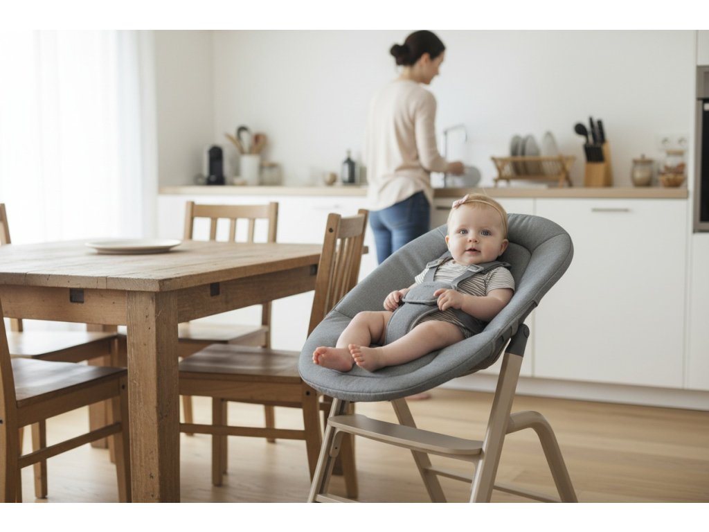 Jakmile dítě začne samostatně sedět, jednoduše odejmete novorozenecký set a získáte vysokou jídelní židličku s praktickým odnímatelným pultíkem. Sedák i opěrku nohou lze výškově nastavit tak, aby se přizpůsobily každé fázi růstu.