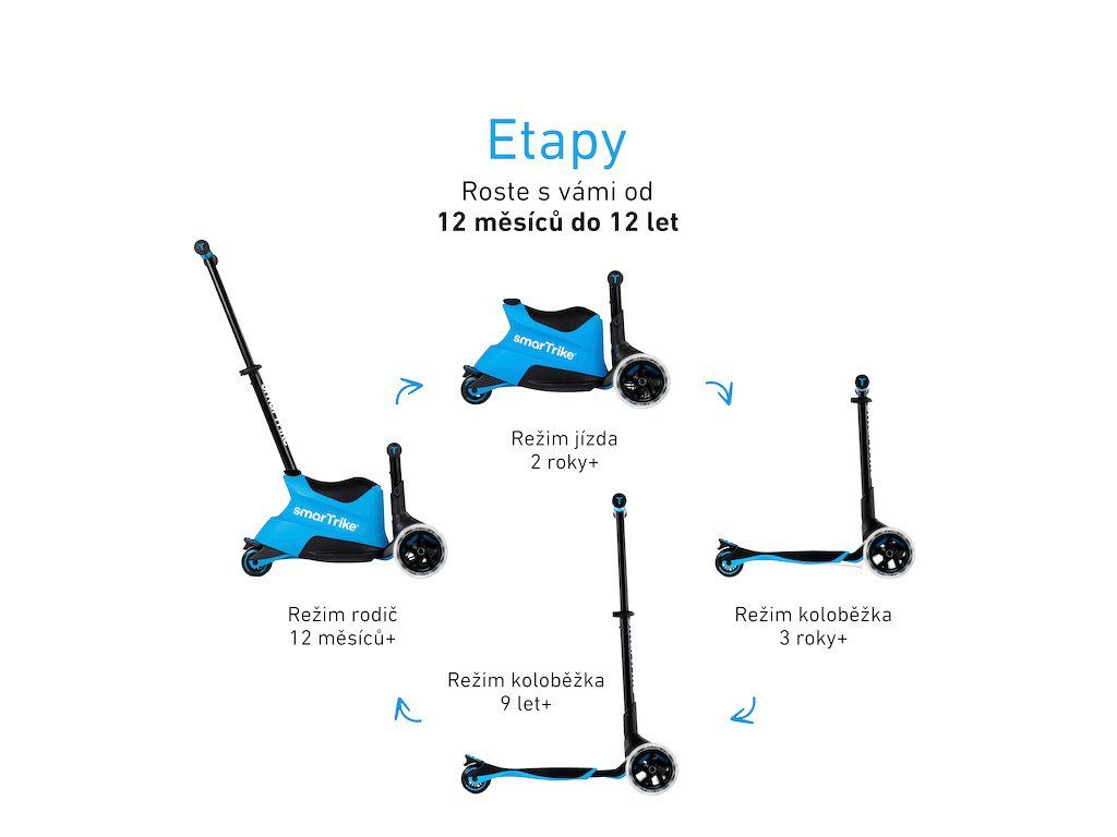 unikátní multifunkční koloběžka určená dětem od 12 měsíců do 12 let