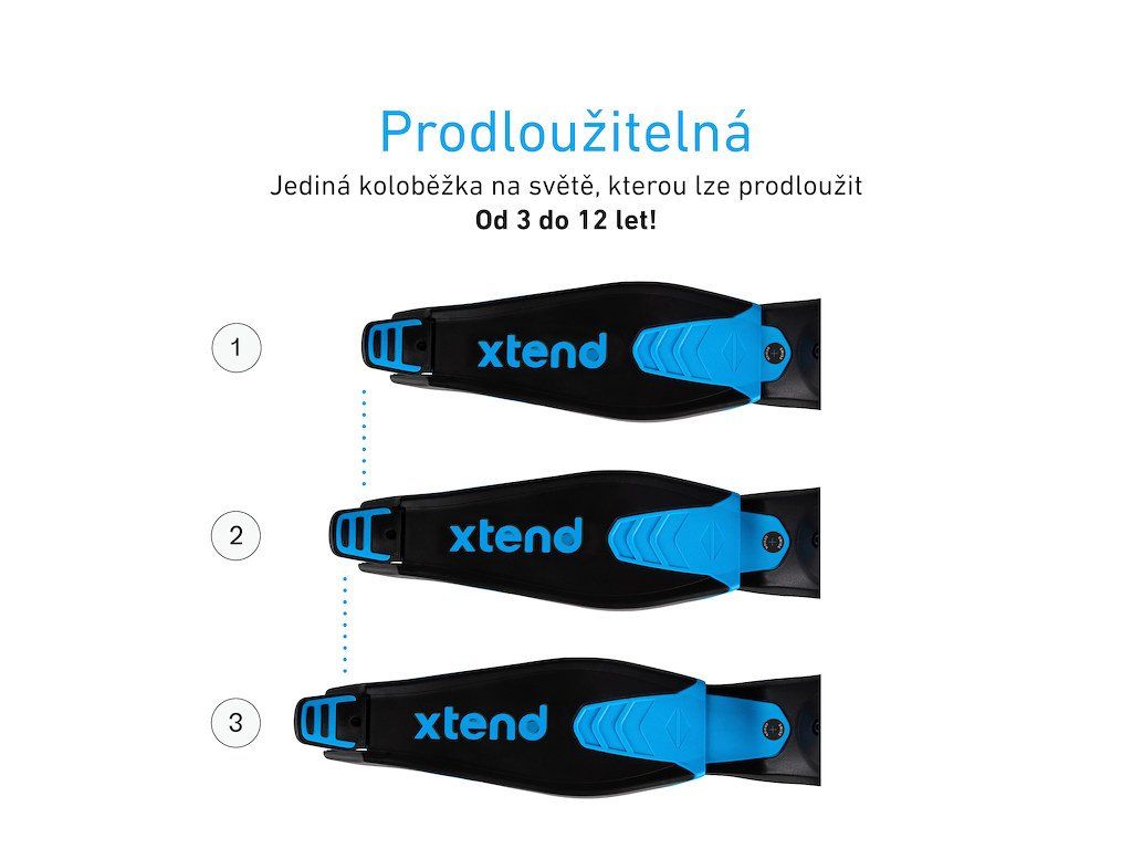 Umožňuje jízdu dětem starším 12 měsíců, kdy vozítko plně ovládá rodič. Děti od 2 let pak mohou po odstranění části určené pro řízení rodiči ovládat tříkolku samy. Tím však využití Xtend Ride-On nekončí. Modulární systém umožňuje tříkolku jednoduše přestavět na koloběžku, která je určená dětem starším 3 let. Díky možnosti prodloužit stupátko koloběžky a vysunout řídítka je možné koloběžku používat až do 12 let dítěte.