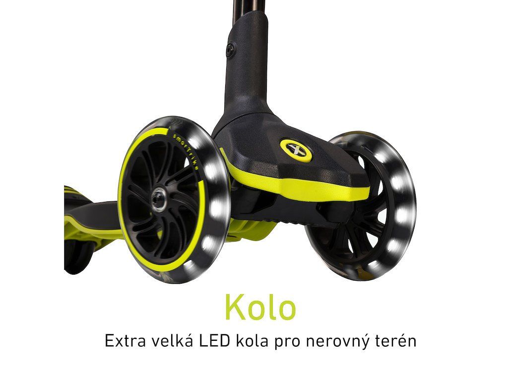extra velká přední LED kola pro hladkou jízdu na nerovném terénu