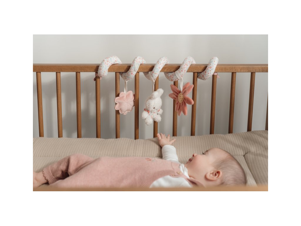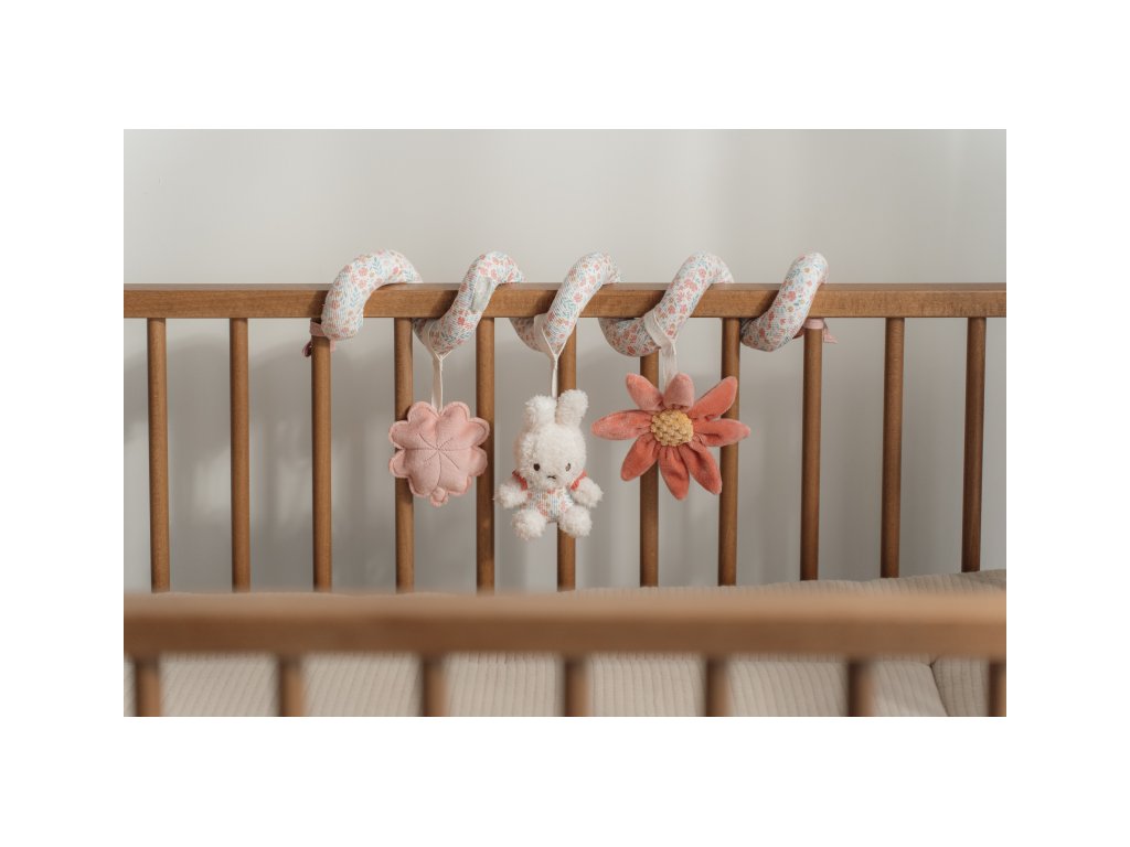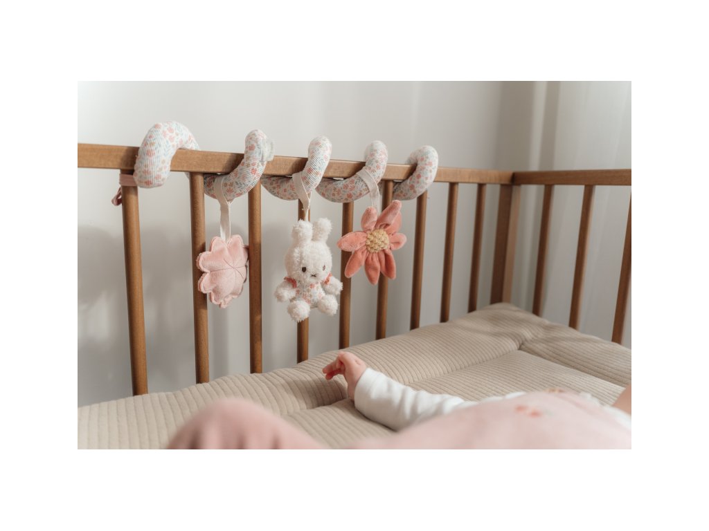 Textilní spirála se zavěšenými měkkými hračkami z jemného plyše v podobě králíčka Miffy, kytičky a čtyřlístku zabaví vaše miminko v postýlce, kočárku i v autosedačce. Hračky stimulují koordinaci ruka / oko dítěte. Spirálu snadno připevníte omotáním kolem bočnice postýlky či madla autosedačky i kočárku. Hračka je součástí kolekce hraček Little Dutch Miffy, jejichž ústřední postavou je roztomilá králičí holčička Miffy, známá z knížek pro děti holandského spisovatele Dicka Bruny. Rozměry: 27 x 13 x 12 cm Vhodné pro děti od narození.Doplňkové parametry