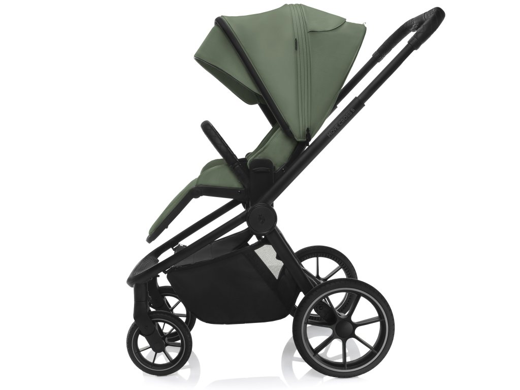 Zádová opěrka je plně polohovatelná až do úplného lehu, což oceníte při delších procházkách i odpoledních spáncích. Opěrka nohou je nastavitelná jednou rukou a je navržena tak, aby pohodlně podržela i větší děti.