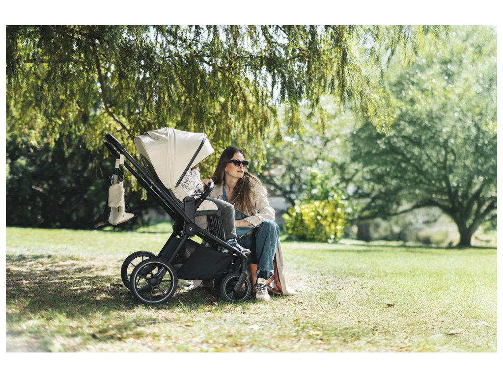 Kočárek umožňuje otočné sportovní sezení, které můžete nasměrovat po i proti směru jízdy. Velkou výhodou je výškově nastavitelné sezení i stříška, každá ve třech úrovních. Přizpůsobí se tak nejen výšce rodičů, ale i růstu dítěte.