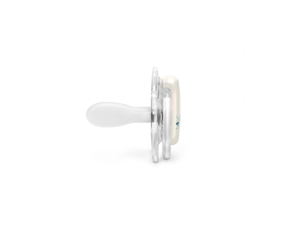 - Tenký, plochý a symetrický tvar - přirozeně se přizpůsobuje ústům miminka a umožňuje správné umístění.