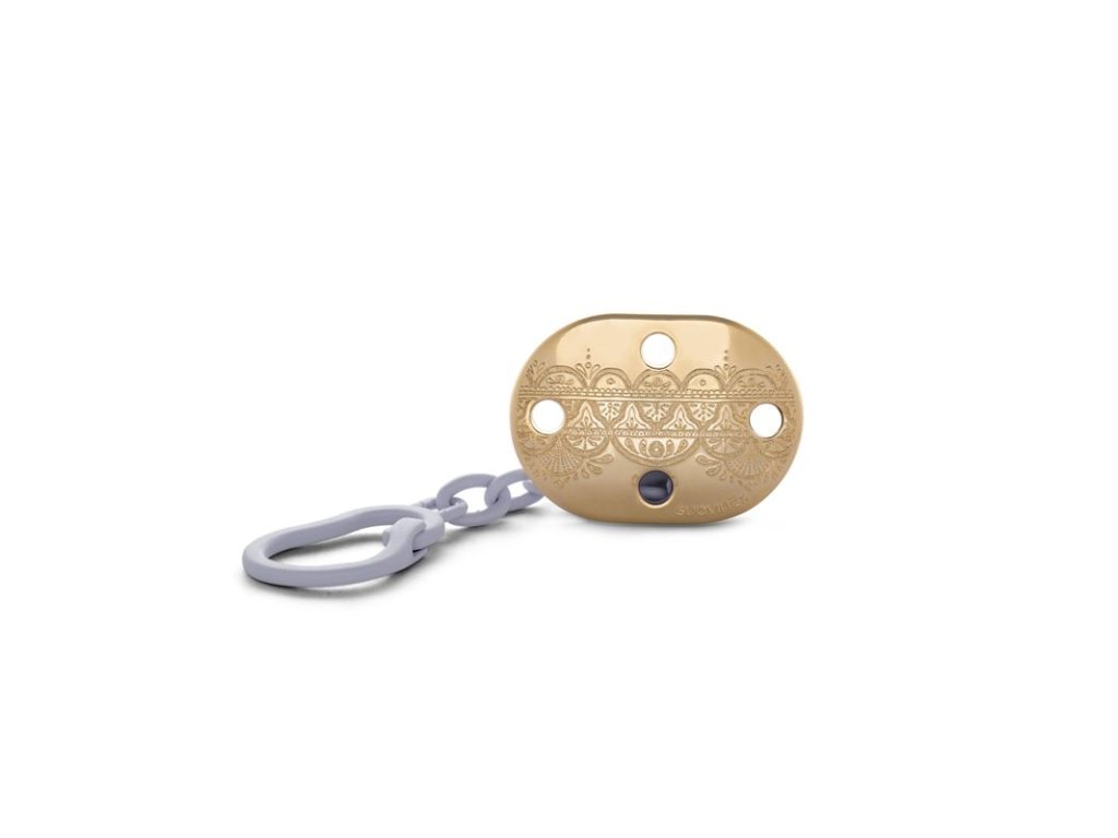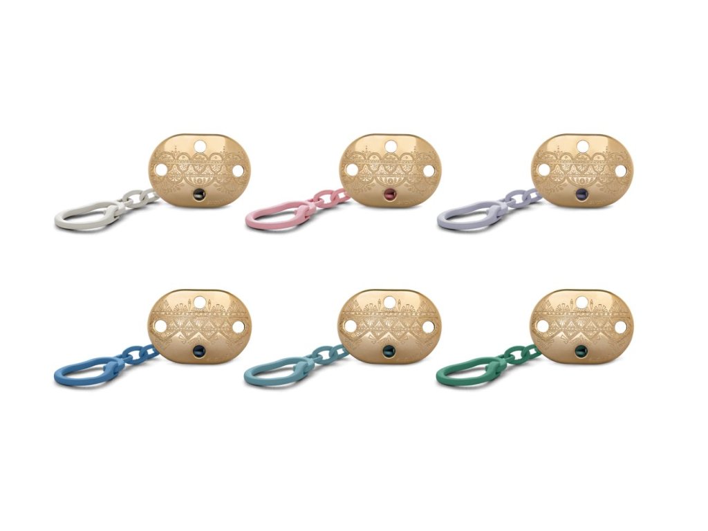 Krásný a praktický klip umožňuje upevnit dudlík na oblečení dítěte a předchází jeho případnému upadnutí na nečistou zem anebo jeho ztrátě.