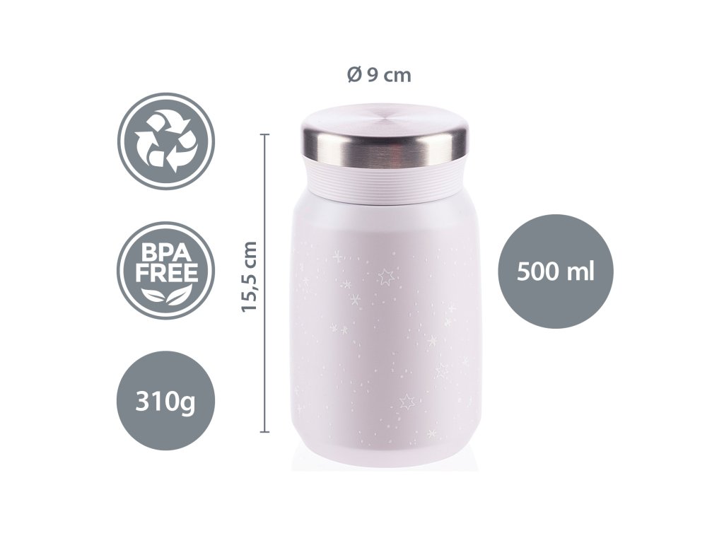Kvalitní termoska na jídlo a příkrmy o objemu 500 ml uchovává horké jídlo až