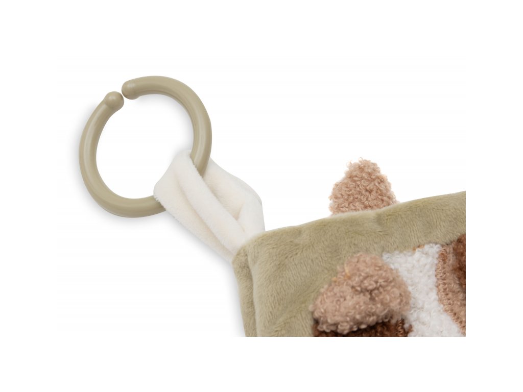 Roztomilá textilní knížka se zvířátky je ideální první knížkou pro vaše miminko. Je plná barev, textur a zvuků, které vaše dítě zabaví a zároveň podpoří rozvoj jeho smyslů i motorických dovedností. Uvnitř knížky najdete stránky se zvířátky z různých textilních materiálů, které svými různorodými texturami lákají ke zkoumání Šustící prvky i bezpečné zrcátko podporují zvídavost a jemnou motoriku Knížka rozvíjí sluch, zrak, hmat a koordinaci ruka–oko zábavným způsobem Plastový kroužek umožňuje zavěšení knížky na kočárek či autosedačku Rozměry: 12 × 12 × 4 cm Složení: polyester, bavlna Možno prát v pračce. Vhodné pro děti od narození.Doplňkové parametry