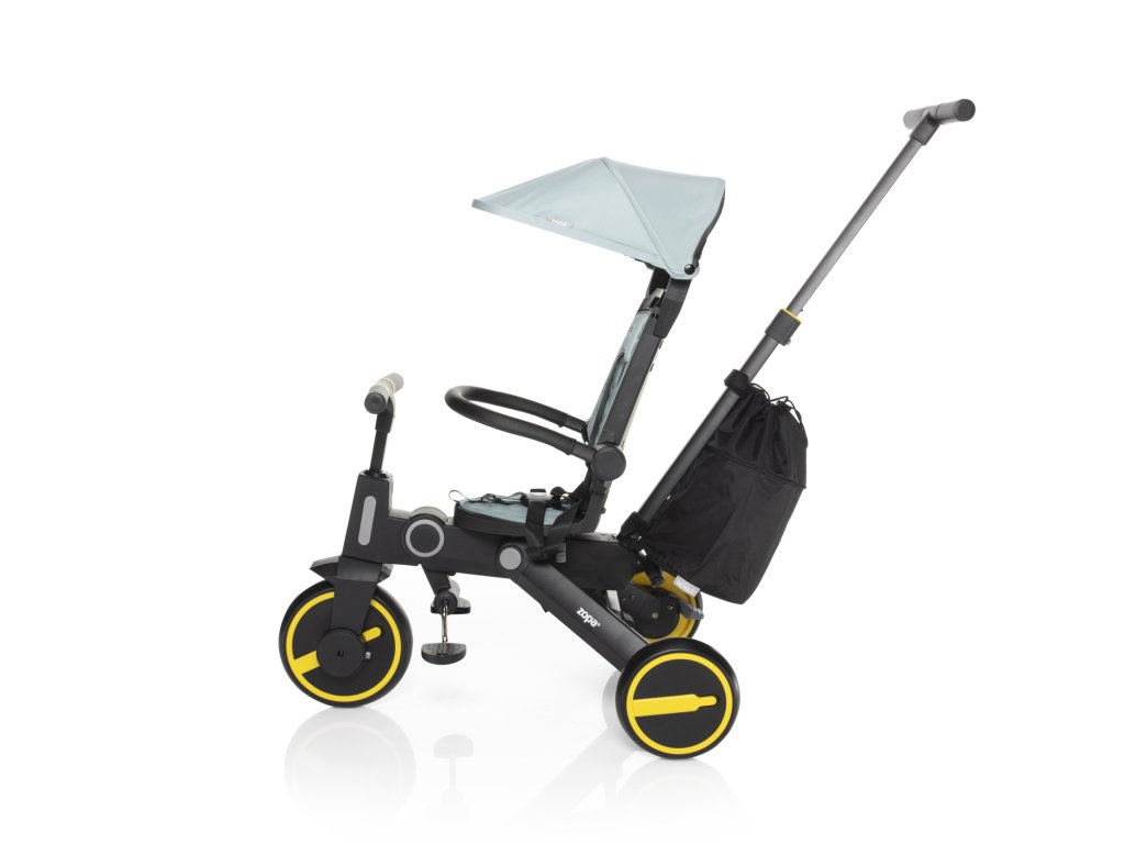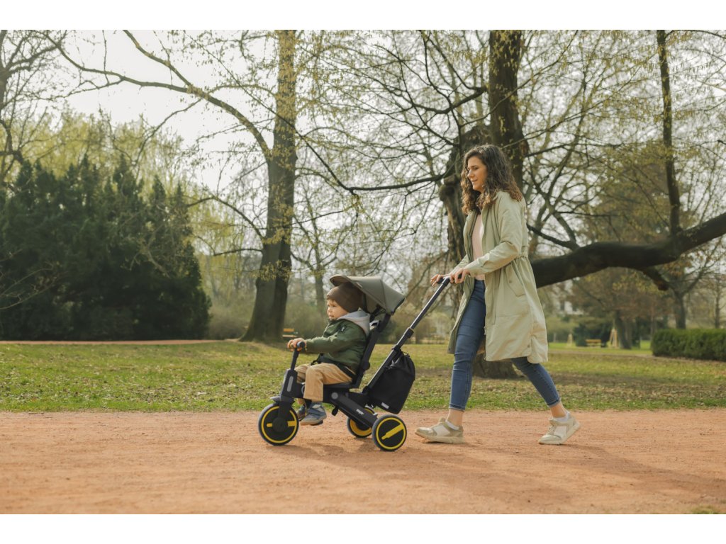nastavitelné vodící tyči a funkci vypnutí řídítek plně nahradí kočárek a dítě si