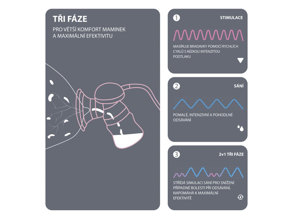 stimulaci, samotné sání a funkci citlivého odsátí veškerého mateřského mléka pro
