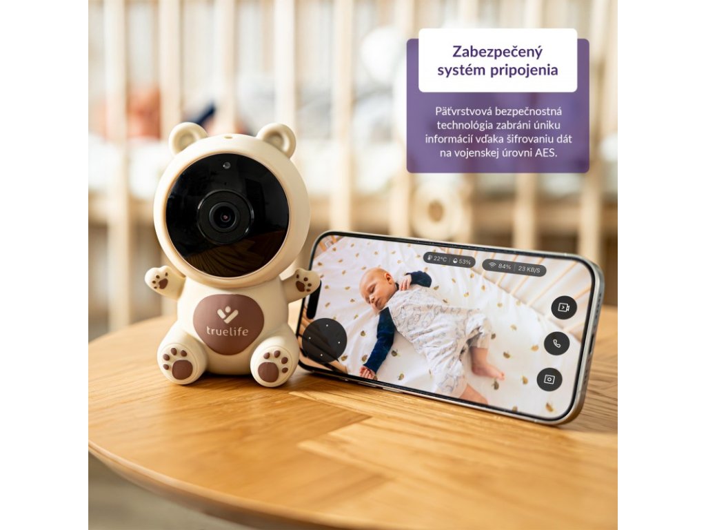 - Už žádné přemýšlení, kde jste nechali rodičovskou jednotku, přenos z chůvy máte neustále u sebe v telefonu. Pouze si stáhnete aplikaci TrueLife Smart, která je dostupná kompletně v češtině/češtině, spárujete svůj telefon s chůvičkou TrueLife NannyCam S3 Smart a je hotovo. Bezpečnost přenášených dat je dokonale zajištěna pětivrstvou bezpečnostní technologií s šifrováním dat na vojenské úrovni AES, takže jediní, kdo děťátko uvidí, jste vy a lidé, se kterými účet sdílíte. Těchto účastníků může být neomezený počet. K aplikaci lze připojit až 16 kamer pro perfektní přehled o všem. Samotná chůva potřebuje být v dosahu Wi-Fi, ale obraz a zvuk už potom přijmete díky aplikaci kdekoli na světě.