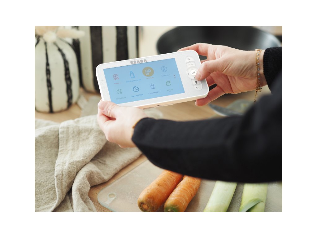 Video chůvička Beaba ZEN Premium vám nabízí dvě možnosti použití - s dodávanou rodičovskou jednotkou s barevným displejem nebo s pomocí aplikace na vašem smartphonu. Díky wifi připojení můžete vaše dítě sledovat odkudkoli potřebujete. mimořádná kvalita obrazu ve dne i v noci širokoúhlá Full HD kamera otočná o 360° a infračervené noční vidění snadno ovladatelný intuitivní displej s vynikající kvalitou obrazu HD 720p neomezené párování prostřednictvím aplikace s více mobilními uživateli možnost připojení až dvou kamer k rodičovské jednotce (druhá kamera se prodává samostatně) speciální mobilní aplikace pro iOS i Android telefony funkce vysílačky umožňuje rodiči uklidnit dítě svým hlasem teploměr a senzor vlhkosti v dětské jednotce pro sledování podmínek v dětském pokoji časovač krmení pro nastavení alarmu na optimální čas krmení zoom (2x, 3x, 4x) 3 uklidňující melodie, bílý šum funkce VOX (inteligentní alarm aktivovaný hlasem dítěte) cloudová služba s nabídkou předplatného pro nahrávání dítěte a prohlížení videí v libovolném okamžiku dosah až 300 metrů ve venkovním prostředí, 50 metrů v interiéru bezdrátová, dobíjecí rodičovská jednotka s nevyjímatelnou lithiovou baterií až 8 hodin provozu po úplném nabití možnost vložení SD karty (karta není součástí výrobku) pro nahrávání videa Obsah balení: kamera, rodičovská jednotka s barevným displejem, 2x kabel USB-CDoplňkové parametry