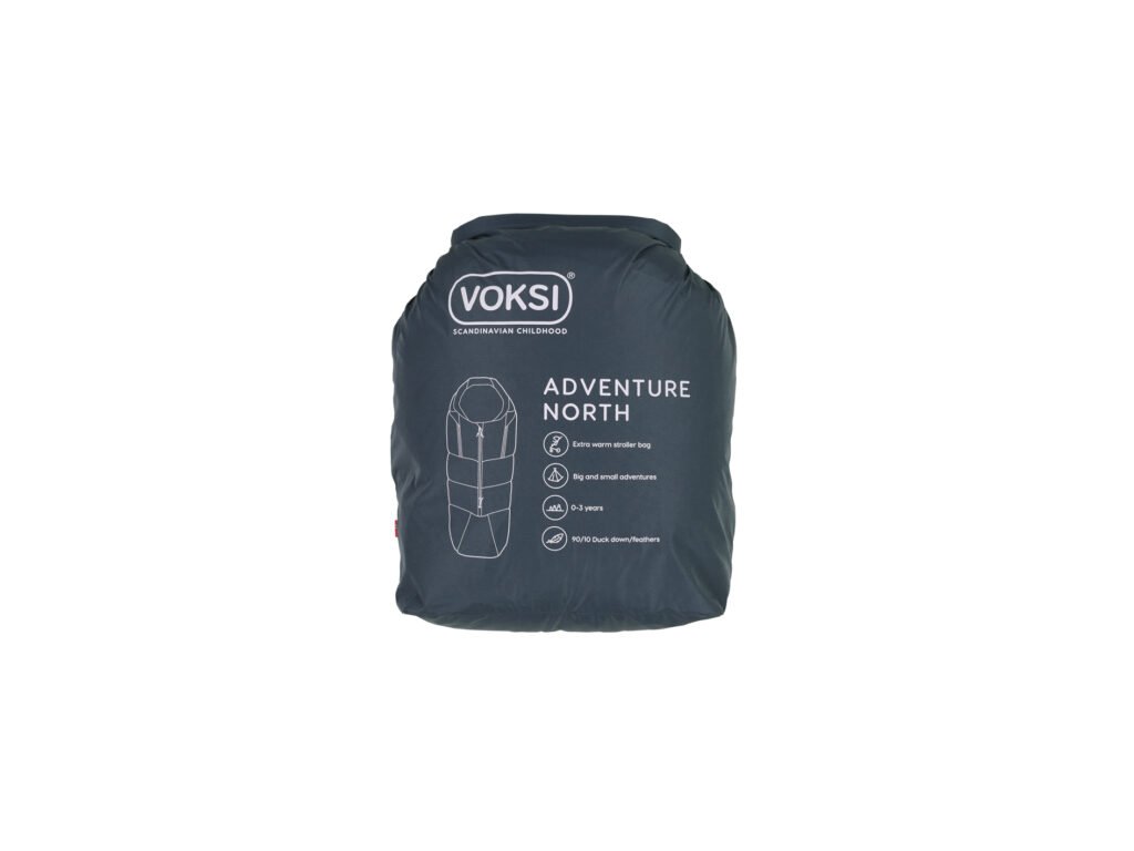 Fusak lze přirovnat k silné, měkké péřové bundě a příjemné látky přiléhají k tělu dítěte. Výplň je vyrobena z kvalitního prachového peří 90/10, tvar fusaku je navržen do unikátního krabicového tvaru, která zabraňuje pronikání chladu dovnitř. Vzduch mezi vlákny prachového peří poskytuje maximální izolaci, proto je vhodné fusak před použitím protřepat. Skladujte vzdušně bez komprese. Dodává se s kompresním vakem, takže jej můžete zmenšit, což je ideální při cestování. Vnější tkanina je ošetřena impregnací BIONIC-FINISH®ECO, což znamená, že je vodoodpudivá i větruodolná a má vodní sloupec minimálně 3000. Pokud je venku prudký déšť, doporučujeme vždy použít pláštěnku. Všechny materiály použité na fusaku Voksi® Adventure North mají certifikaci OEKO-TEX® standard 100, třída 1, což je značka kvality, která označuje, že žádný z materiálů ve výrobku neobsahuje škodlivé chemikálie. Voksi® Adventure North disponuje maximálním zateplením a je teplejší než model Adventure.