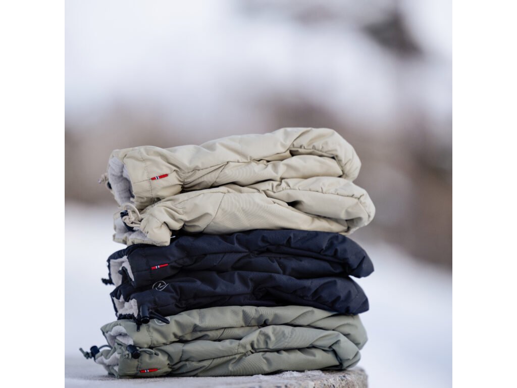 Jsou vyrobeny z nejkvalitnějších přírodních materiálů. Vyplněné jsou prachovým peřím a poskytují jedinečnou izolaci proti chladu. Vzduch mezi vlákny prachového peří poskytuje maximální izolaci a udrží vaše ruce v teple. Větru odolná vnější tkanina má vodní sloupec minimálně 8000 mm a je opatřena vodoodpudivou vrstvou BIONIC-FINISH®ECO. Všechny materiály na rukavicích Voksi Mitten mají certifikaci OEKO-TEX®standard 100, třída 1, což je značka kvality, která označuje, že žádný z materiálů ve výrobku neobsahuje škodlivé chemikálie.