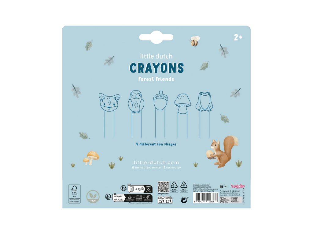 Kvalitní voskovky v 5 barvách přinesou vašim dětem hodiny kreativní zábavy. Každá voskovka je zakončena roztomilou postavičkou, která láká ke hře a dělá z kreslení ještě větší zábavu. Ideální pro první výtvarné pokusy: Snadno uchopitelné i pro malé děti – perfektní pro první čárky, tvary i obrázky Voskovky jsou měkké, hladce kloužou po papíře Postavičky podporují rozpoznávání tvarů a barev Vyrobeno z netoxických materiálů, bezpečné pro děti Vhodné pro každodenní tvoření doma, ve školce nebo na cestách Podporují rozvoj dovedností: Zlepšují úchop a koordinaci oka a ruky Pomáhají rozvíjet jemnou motoriku Umožňují dětem vyjadřovat se kreativně a učí je pracovat s barvami Rozvíjejí fantazii a trpělivost prostřednictvím hry Voskovky jsou součástí designové kolekce hraček a doplňků Little Dutch Forest Friends inspirované životem v lese. Vhodné pro děti od 2 let.Doplňkové parametry