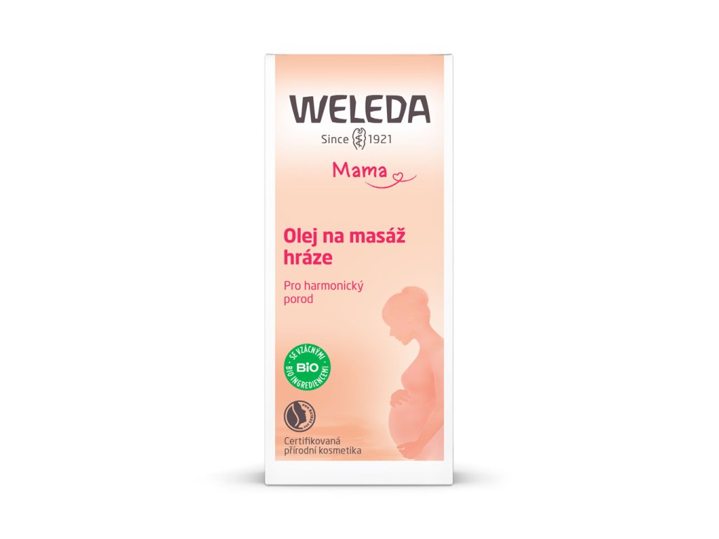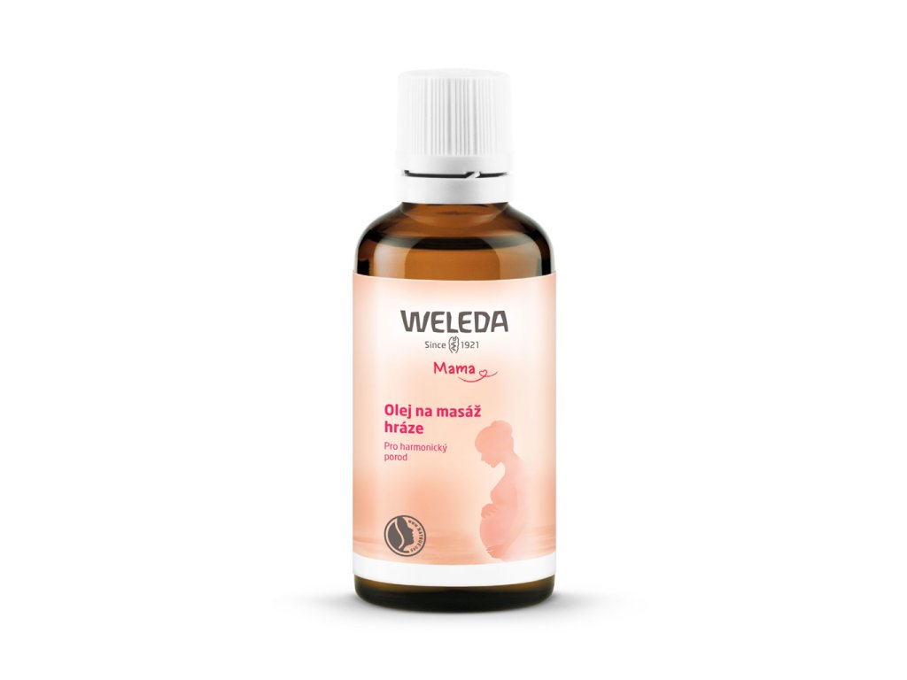 Pravidelné masáže Olejem na masáž hráze WELEDA zvyšují šanci na porod bez nástřihu. Kompozice olejů založená na nejjemnějším mandlovém oleji a oleji z pšeničných klíčků obsahuje velké množství vitamínu E, uvolňuje tkáň hráze a zvyšuje její elasticitu.